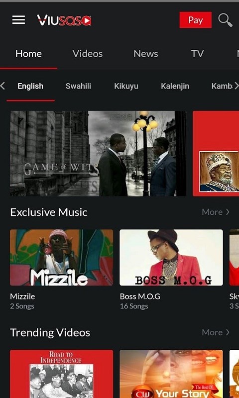 Viusasa provides unlimited videos music and live tv in kenyan languages.
